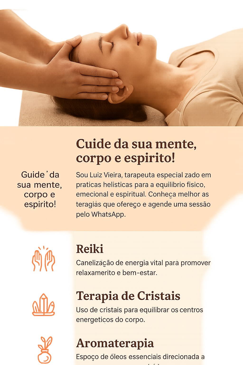 Sou terapeuta holístico com mais de 15 anos de experiência em terapias integrativas. Acredito que a saúde vai além do físico — ela passa pelo emocional, energético e espiritual.